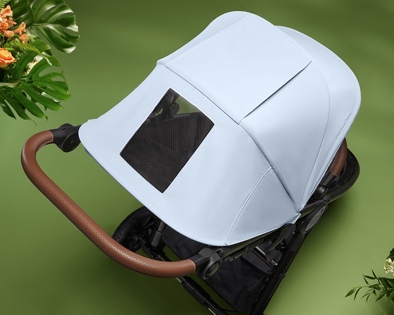 The large UV 50+ canopy features a magnetic mesh window so you can easily check in.
