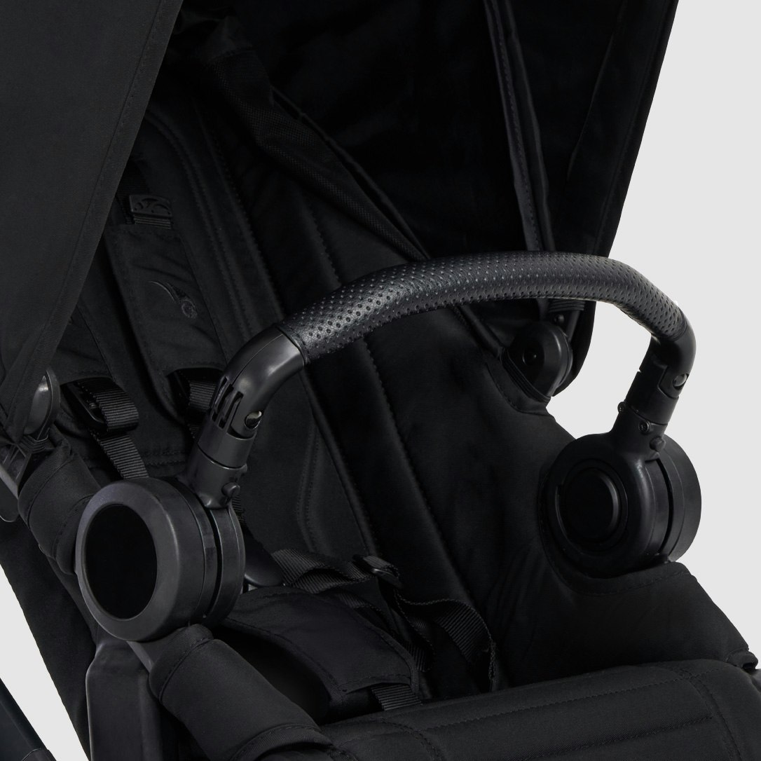 Luxe look and feel with smooth vegan leather accents on both the adjustable handlebar and included belly bar.