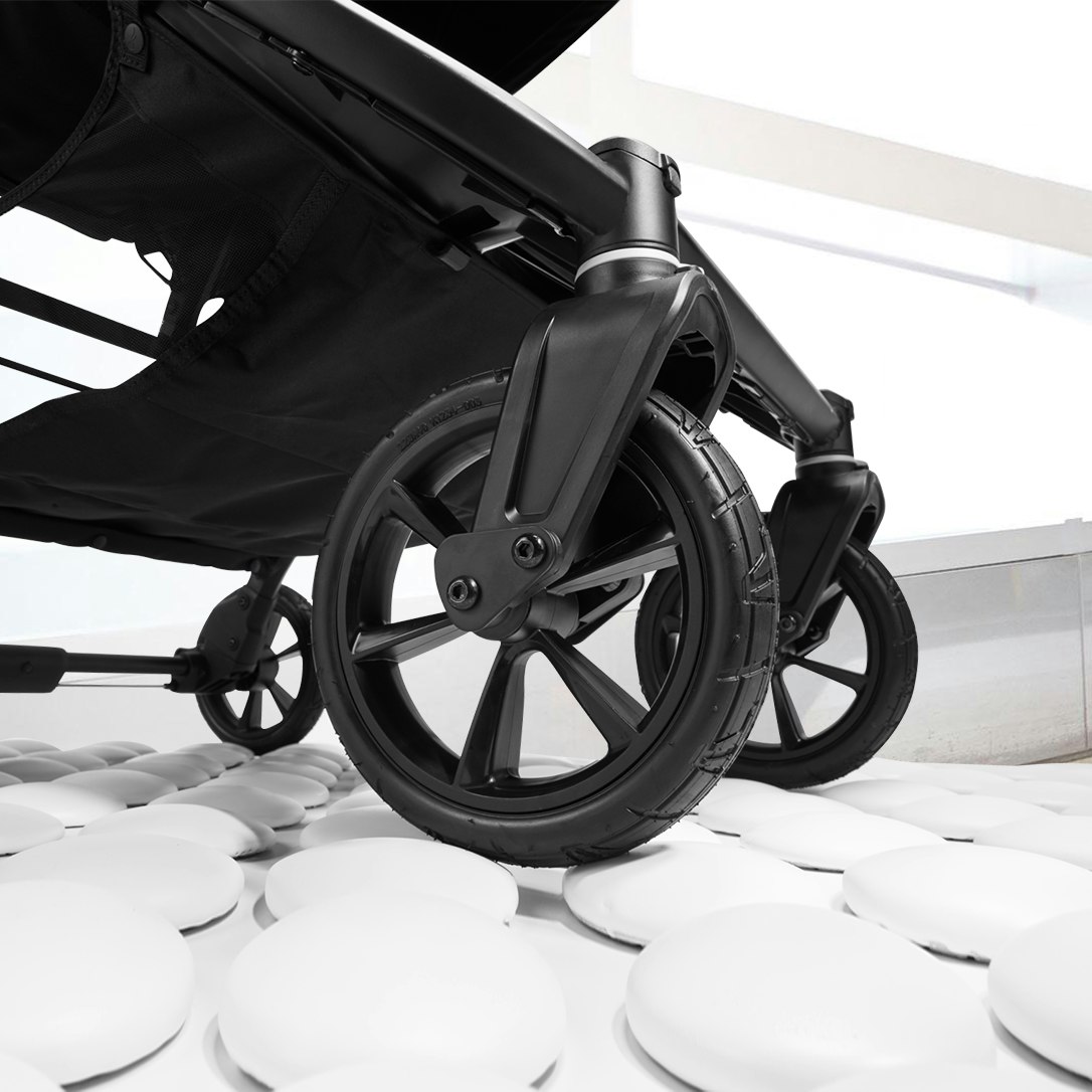 This test simulates mounting a curb to make sure your stroller can conquer any city street with ease. The stroller takes the curb 10,000 times per cycle, and we repeat the test 5-7 times on each pre-production sample.*